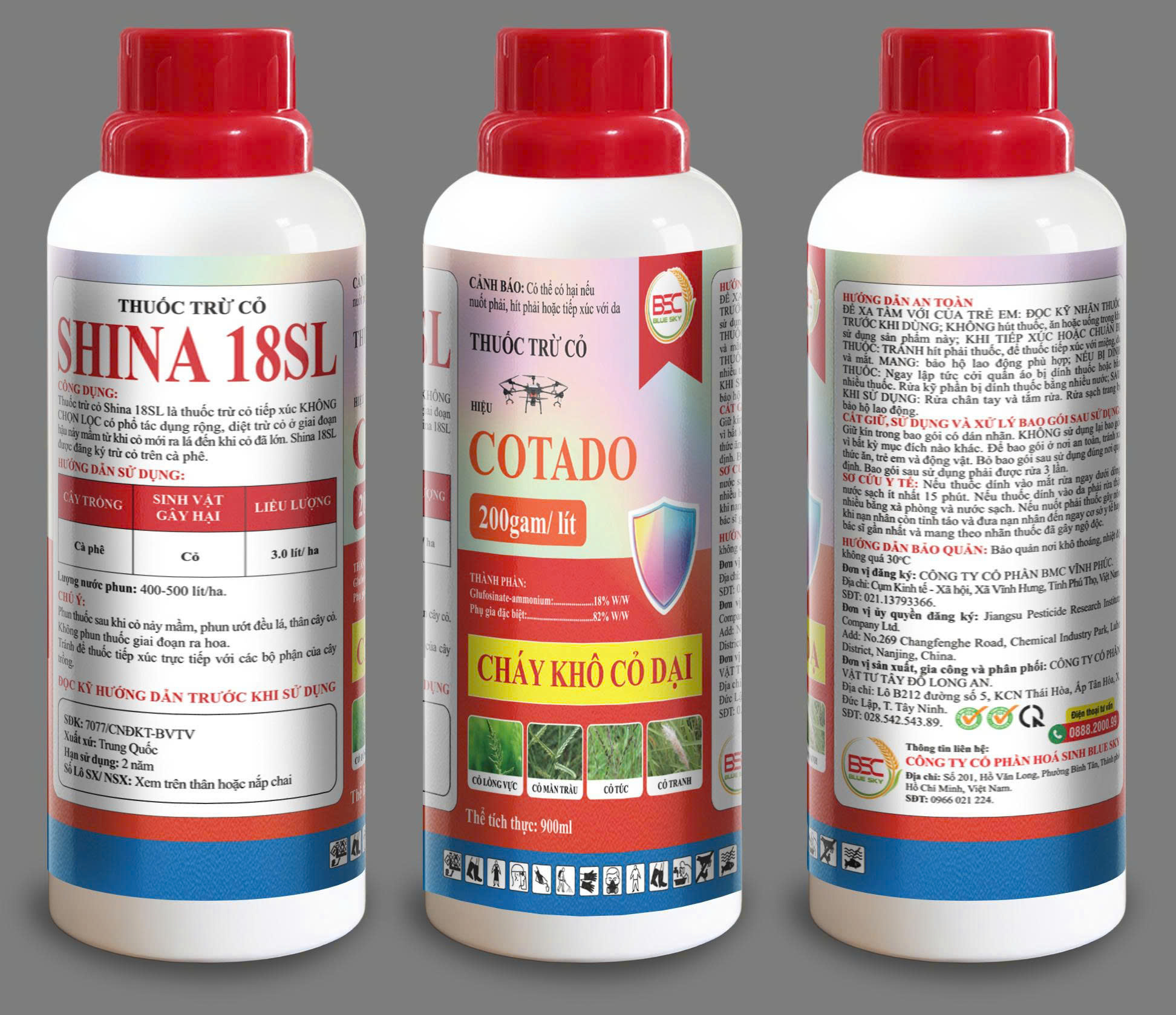 - Thuốc trừ cỏ BSC COTADO (SHINA 18SL) là thuốc cỏ lưu dẫn KHÔNG chọn lọc có phổ tác động rộng, diệt trừ cỏ ở giai đoạn hậu nẩy mầm từ khi cỏ mới ra lá đến khi cỏ đã lớn