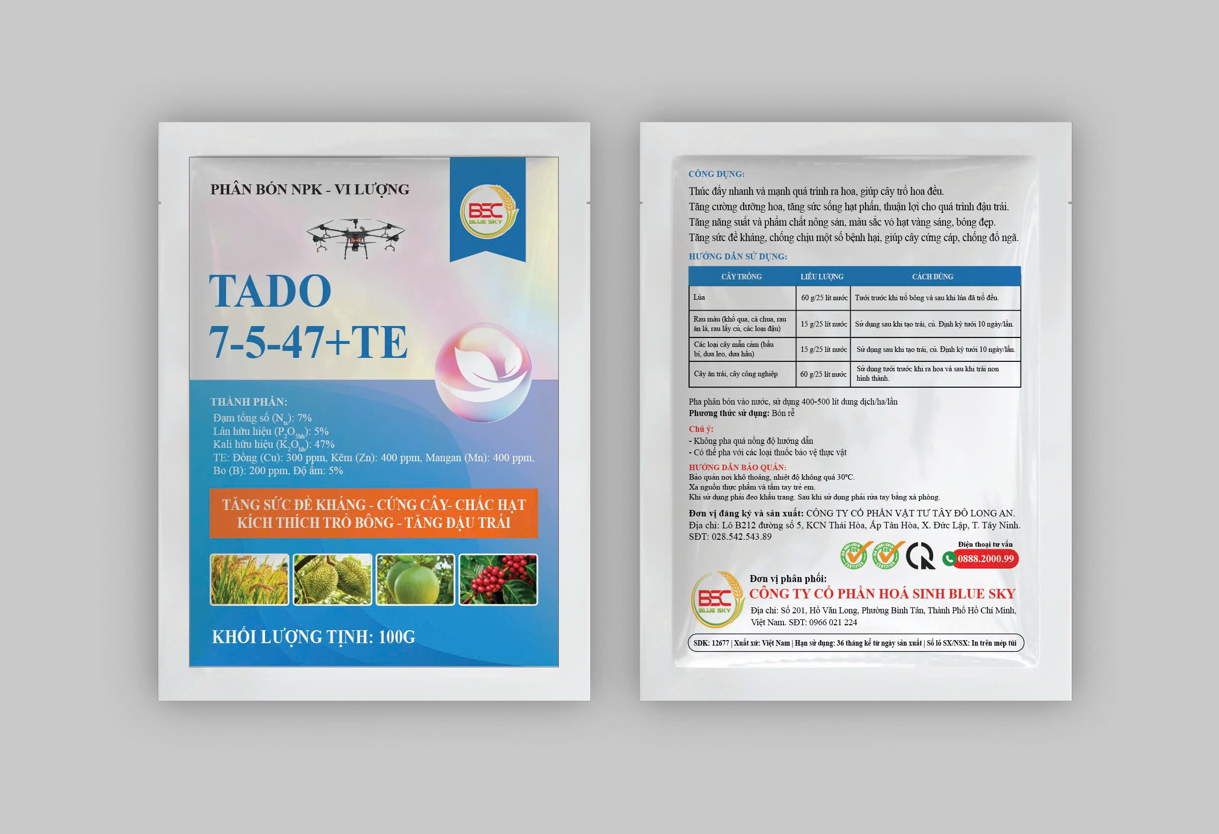 BSC TADO 7-5-47+TE – TĂNG SỨC ĐỀ KHÁNG – CỨNG CÂY – CHẮC HẠT – KÍCH THÍCH TRỔ BÔNG – TĂNG ĐẬU TRÁI