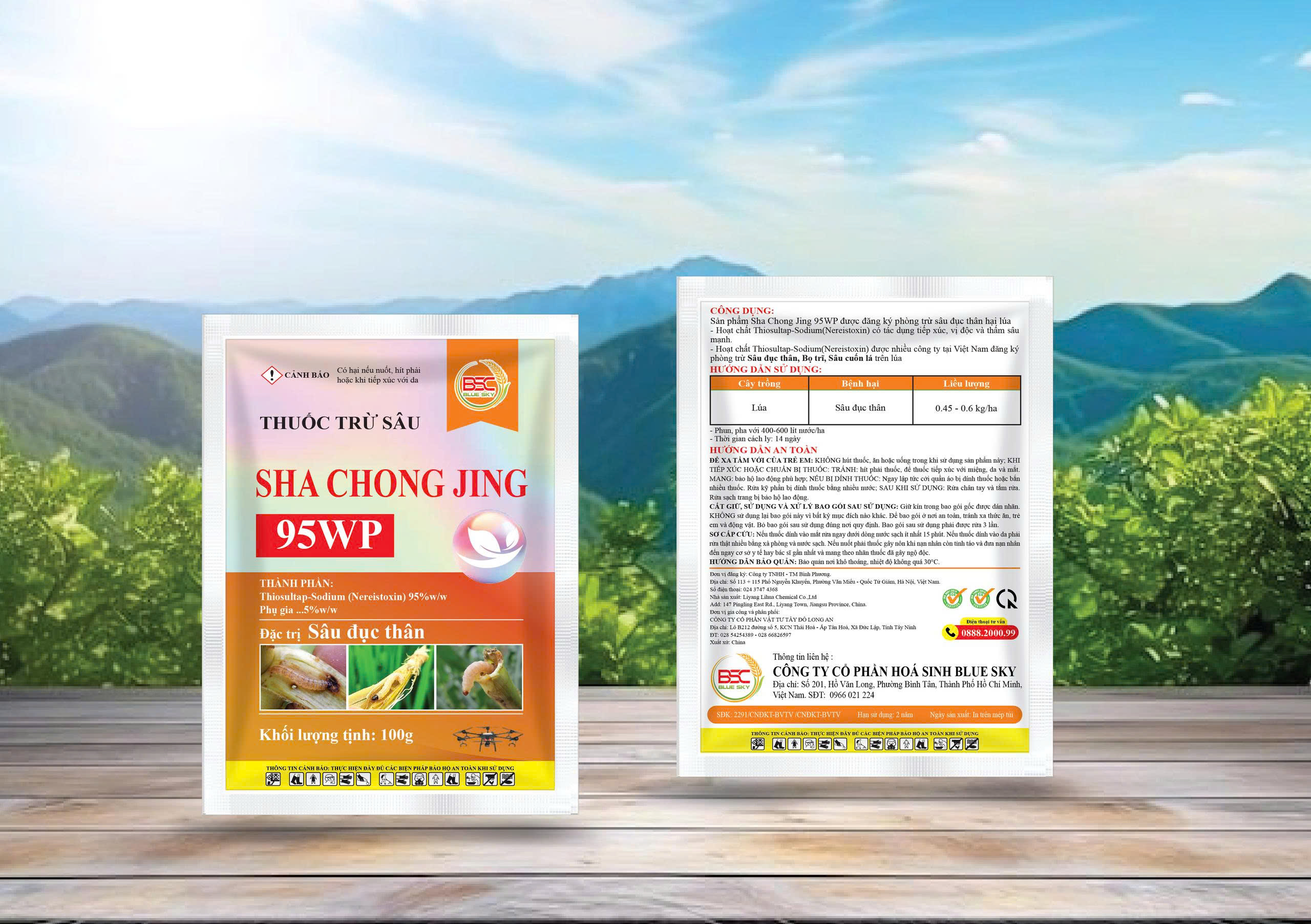 - Sản phẩm Sha Chong Jing 95WP được đăng ký phòng trừ sâu đục thân hại lúa Hoạt chất Thiosultap-Sodium (Nereistoxin) có tác dụng tiếp xúc, vị độc và thấm sâu mạnh. Hoạt chất Thiosultap-Sodium (Nereistoxin) được nhiều công ty tại Việt Nam đăng ký phòng trừ Sâu đục thân, Bọ trĩ, Sâu cuốn lá trên lúa.