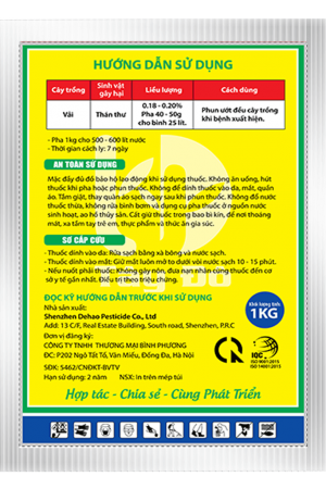 | Hoạt chất | Mancozeb: 800g/kg, Additives: 200g/kg |